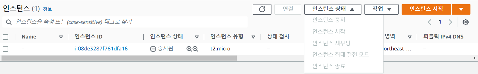 참고로 인스턴스 종료를 누르면 컴퓨터를 반납하는거라서 여러분들의 소중한 작업물이 다 날라간다.