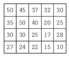 첫째 줄에는 지도의 세로의 크기 M과 가로의 크기 N이 빈칸을 사이에 두고 주어진다. 이어 다음 M개 줄에 걸쳐 한 줄에 N개씩 위에서부터 차례로 각 지점의 높이가 빈 칸을 사이에 두고 주어진다. M과 N은 각각 500이하의 자연수이고, 각 지점의 높이는 10000이하의 자연수이다.